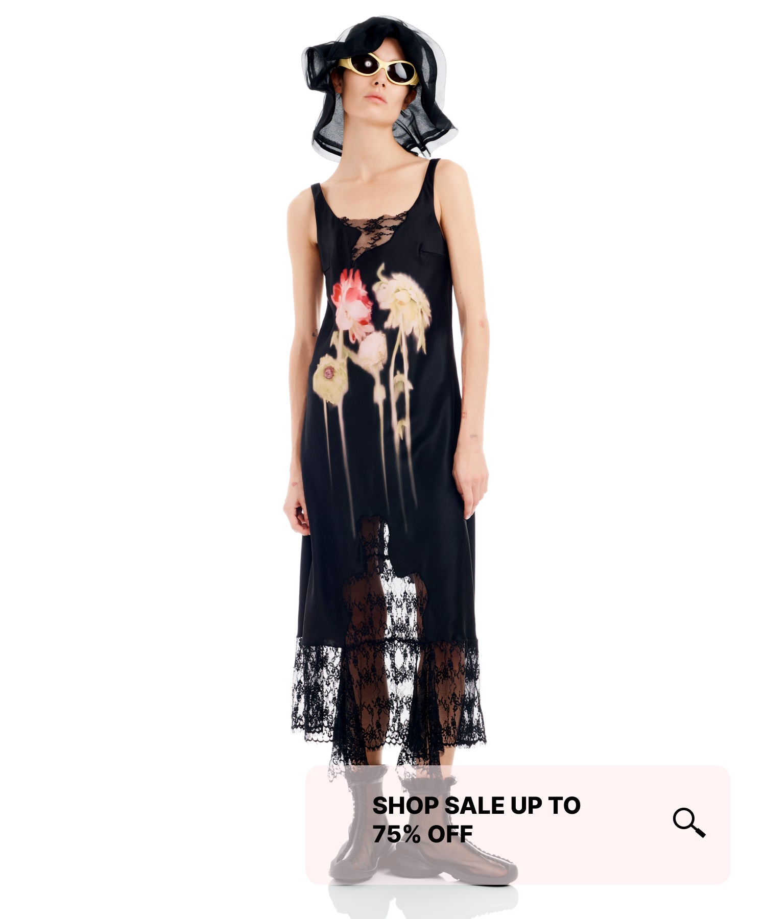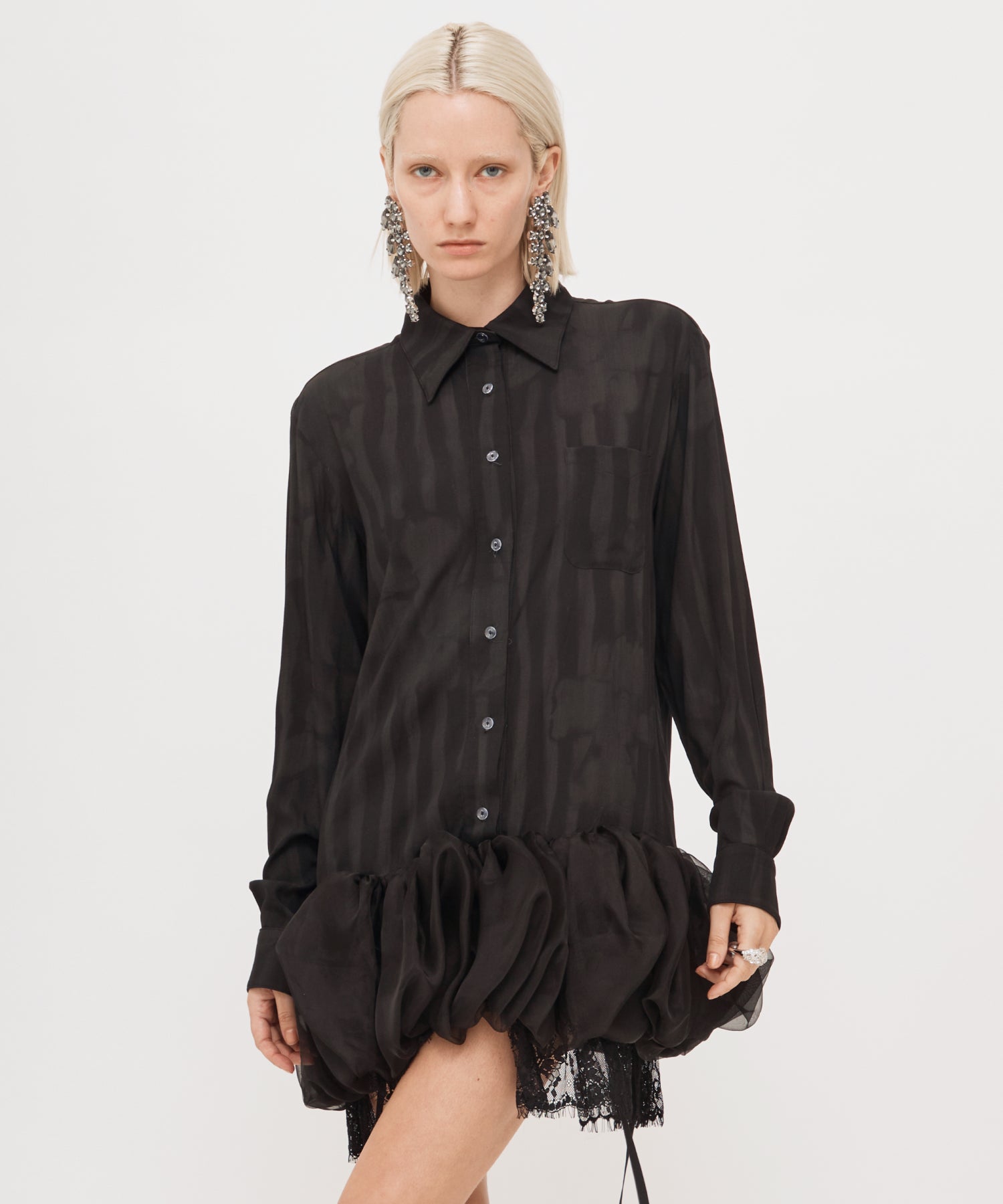 BLACK SATIN WATERLILY MINI DRESS