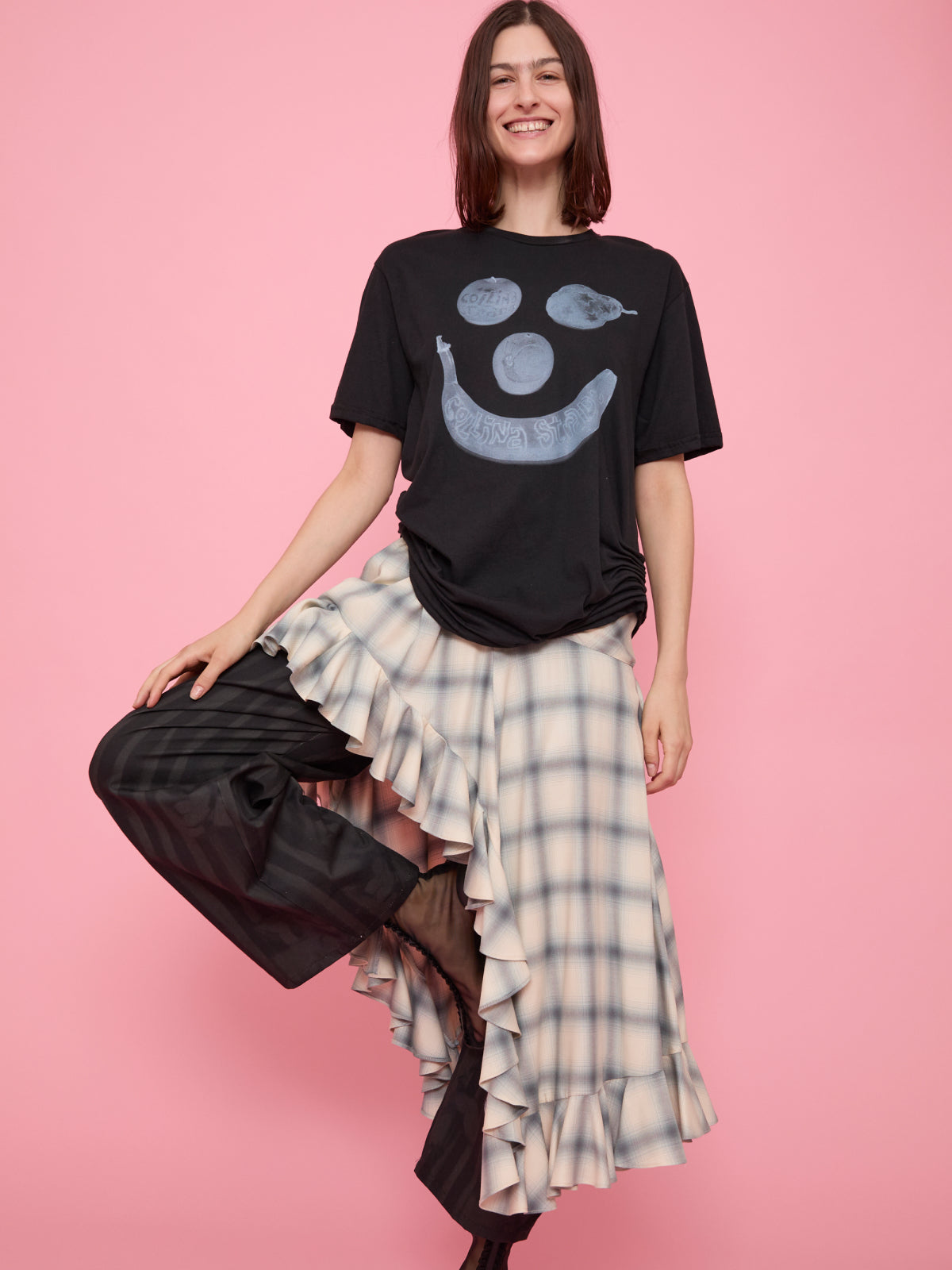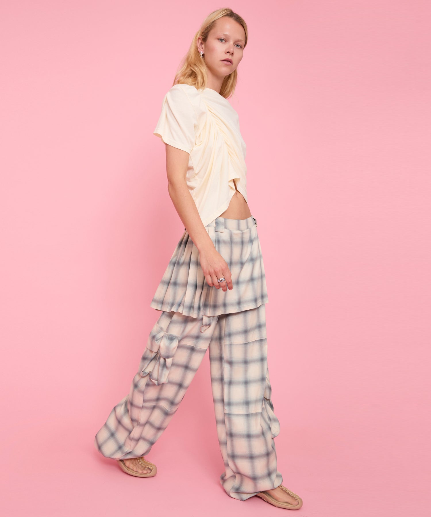 BLACK WAVY FLOWER STRIPE LAWN SKIRT CARGO PANT